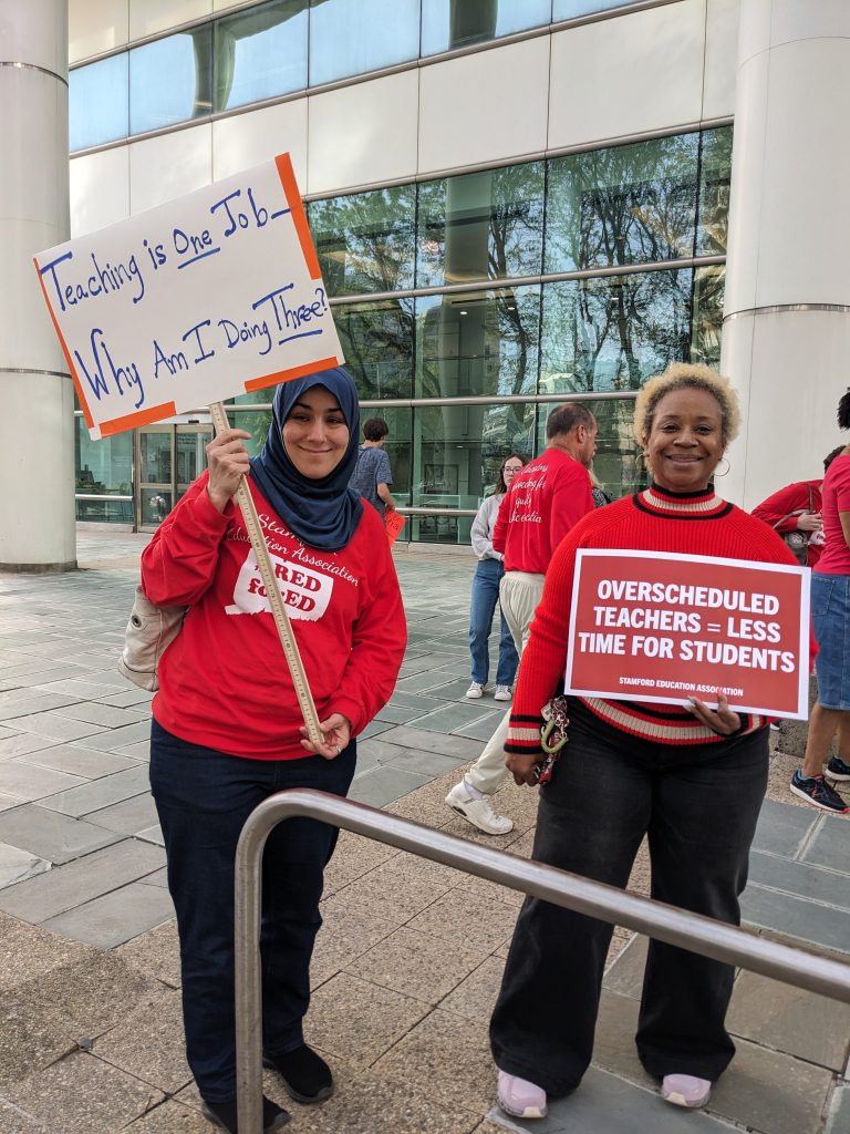 “All of these people here in protest of the 4×4 schedule—it’s not an adversarial action. It’s an act of love and dedication for the students and families of Stamford,” CEA Vice President and Stamford resident Joslyn DeLancey told the board.