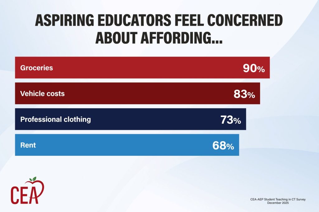 “Aspiring educators plan and deliver instruction, assess students, support families, and contribute to school communities, yet most receive no compensation creating a major financial barrier,” said CEA President Kate Dias. “HB 5216 addresses this issue and is a straightforward equity measure. If Connecticut is serious about developing a strong and diverse educator workforce, then entry into the profession must be financially accessible. No candidate should have to choose between completing student teaching and covering basic living expenses.”