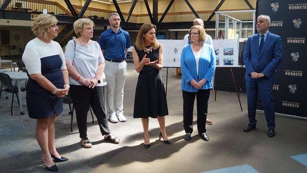 A bill that passed the legislature this session makes HVAC funding more accessible to school districts, and Lieutenant Governor Susan Bysiewicz and Department of Administrative Services Commissioner Michelle Halloran Gilman visited East Hartford High School today to get the word out about the grant program, which goes live August 1.
