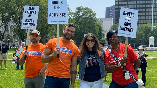 “I’m so proud to stand here with you this afternoon as we continue to fight for our civil liberties, our right to peaceful protest, and our need to stand up for those who can’t,” CEA Vice President Joslyn DeLancey told the crowd gathered on the New Haven Green Sunday for the CT Civil Liberties Defense Rally.