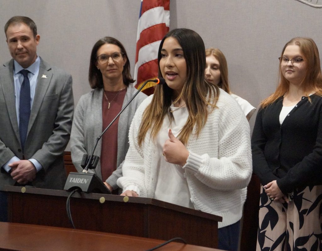 SCSU junior Madison Selander thanked legislators on the Education Committee for their support of a paid student teaching bill.
