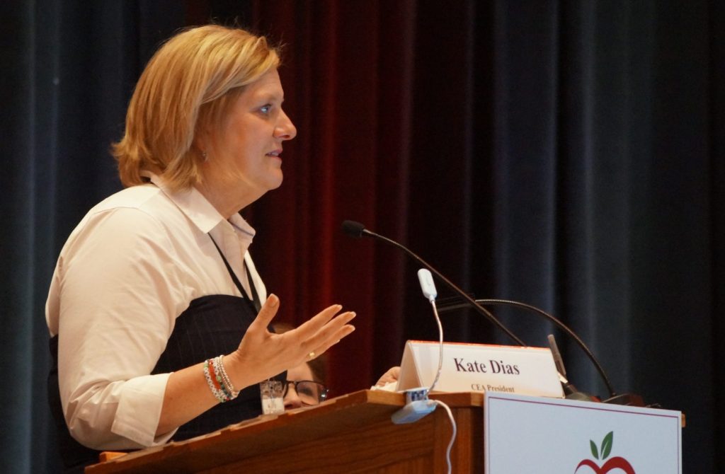 In her remarks to delegates, Dias discussed the many challenges education and educators are currently facing but said she thinks teachers and teachers unions are uniquely situated to fight back.