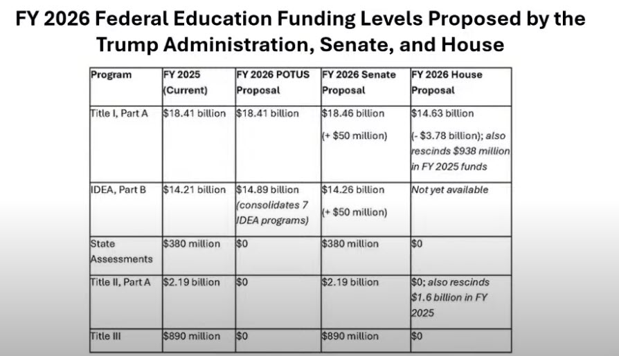 At a forum held by the legislature’s Education Committee last Friday, State Department of Education staff explained the three current federal education budget proposals that have been put forth by the president, House, and Senate. While the Senate’s proposal adds additional funding for fiscal year 2026, the budget proposals put forth by the president and House both cut education spending by billions of dollars.