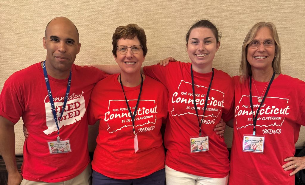 CEA UniServ Rep Greg Perry and New London Education Association members Margaret