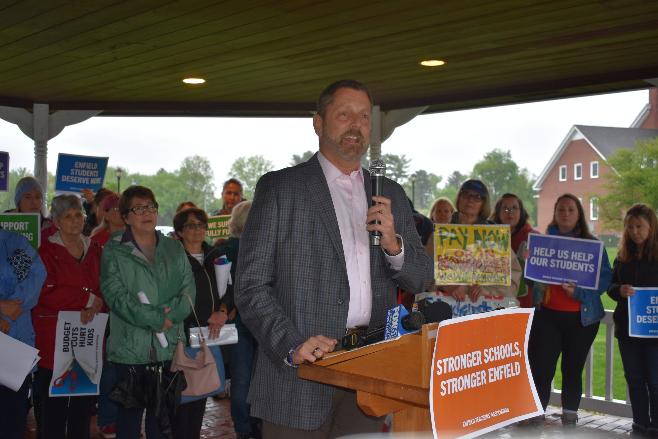“This is Teacher Appreciation Week,” said CEA’s DeLancey, “and I want to give a shoutout to Enfield educators, who have put in more than their time to make sure the kids who were hurt by the last budget were still taken care of, despite the lack of prioritizing the work that they do. It’s truly tragic and disappointing for a state like ours, which should be a pioneer in education, which should have a thriving school system in every town. We’re not broke. We’re smart. We’re caring. And there’s nobody who cares more or puts more effort into their work than a public school teacher.”