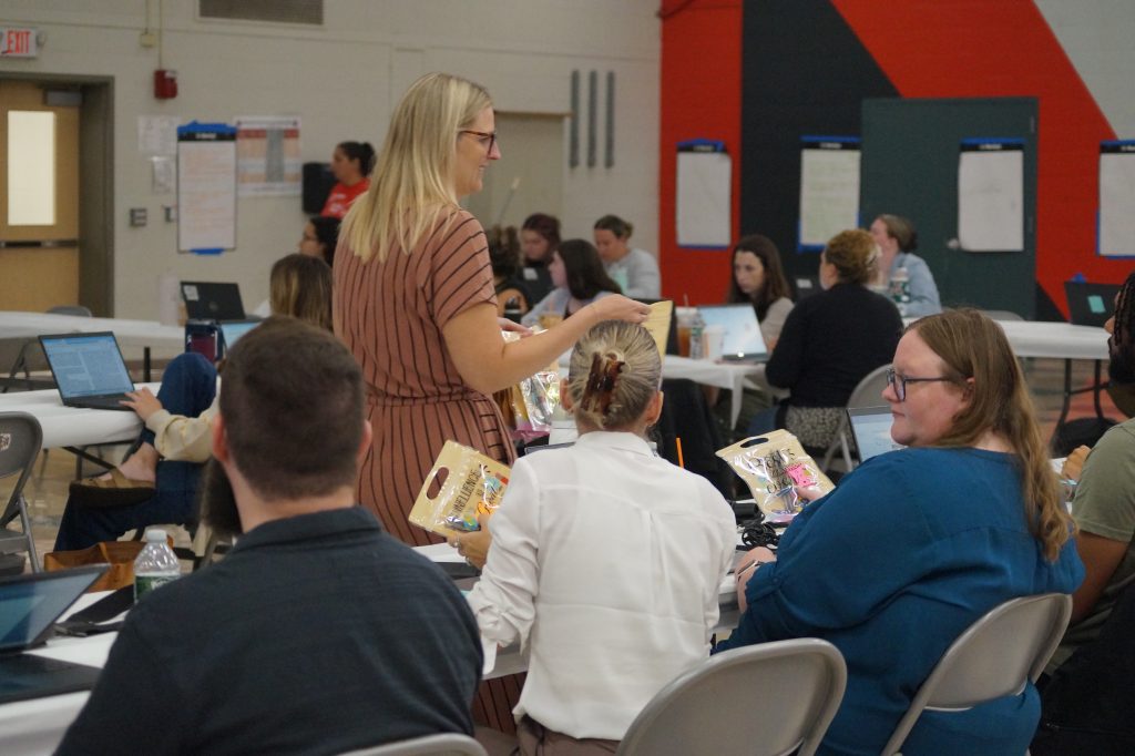 “Even as a first-year teacher, it’s important that you all build a community with your fellow new teachers. You sort of grow up together. Some of the closest friendships I have in my life are with people like the social studies teacher across the hall because we both started teaching within a year of each other and we’ve watched our kids grow up together. You’re hopefully going to build that community amongst the staff here.”