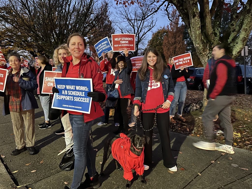 Stamford educators and parents stand side by side in support of a better schedule for students.